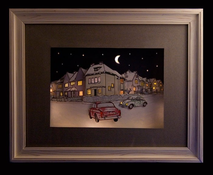 Le carton est une matière peu coûteuse et facile à travailler. L'art du carton vous est facilement accessible et vous pouvez créer des objets magnifiques en carton comme par exemple ce cadre en carton illuminé avec des lampes : une de mes spécialités. |