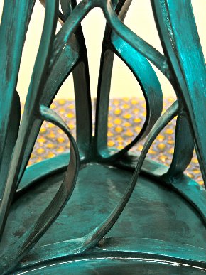 I like to create complex shapes out of corrugated cardboard. To succeed, I'm obliged to imagine special templates. This complex cardboard lamp body is illuminated: that's my favorite job. That's my speciality. |